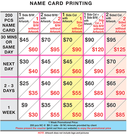 - Express name card printing